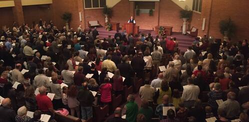 Worship assemblies are filled with acapella singing (singing without the aid of instruments). The lyrics are projected onto the screen, and everyone is always invited to sing along. In addition to our singing, we offer prayers of thanks and hear God’s Word through Scripture.